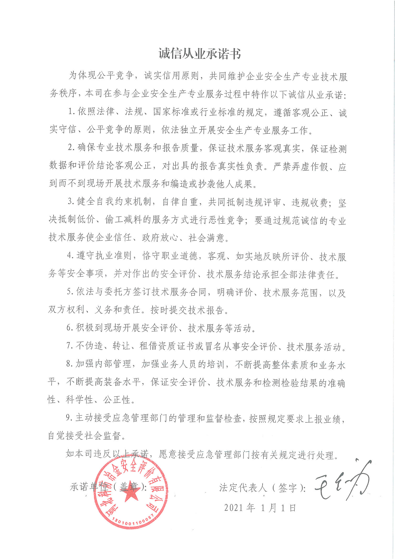 公司自成立以來,以高度的責任感和使命感,秉承“科學、客觀、公正、負責”的宗旨,始終堅持“以質量求生存,以信譽求發展”的經營理念,為各級政府安全生產把好關,為企業安全生產服好務。多年來始終不忘初心持續改進。